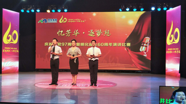 7月3日下午两点,明化集团庆祝建党97周年暨庆祝明化建企60周年“忆芳华·逐梦想”演讲比赛在章丘电视台演播大厅举行。集团领导和来自21个党支部的近200名观众现场观看了比赛,无限章丘APP同步网络直播比赛。