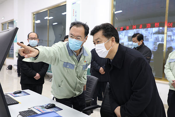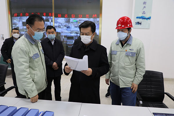 李胜利一行实地考察了88858cc永利科技中央控制室,听取了关于集团生产经营现状和发展规划的汇报。李胜利对集团借搬迁之机实现转型升级发展表示肯定,并检查了集团疫情防控检查站和岗位消杀、全员测量体温记录等工作。李胜利对集团“有部署、有措施、有落实”的疫情防控工作表示满意,特别是对集团从员工班上防控消杀到发放口罩、面、油、蔬菜等生活用品的全方位疫情管控措施表示赞赏,并建议园区作为有效措施进行推广。