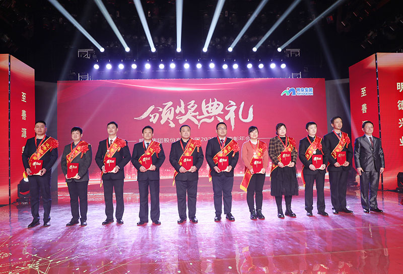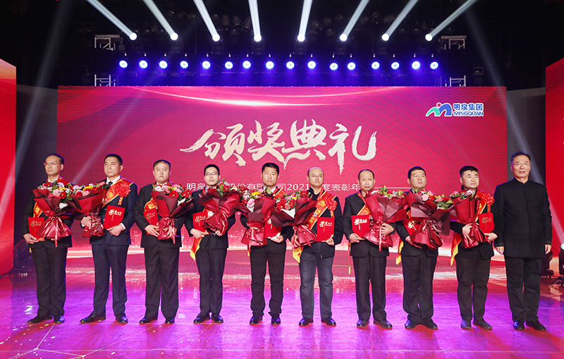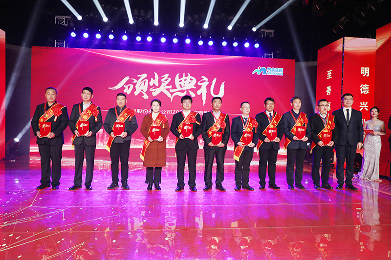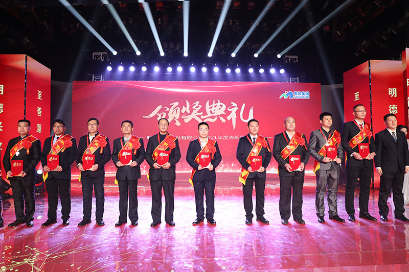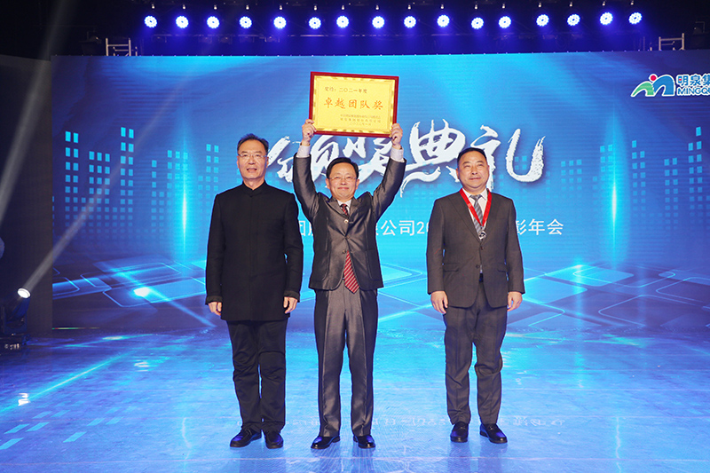 与会人员共同观看了集团2021年度工作回顾视频《勇毅前行筑基础 发力高端向未来》。集团总裁孙志田宣读了《88858cc永利关于表彰2021年度优秀集体、优秀个人的决定》,隆重表彰了2021年度涌现出的35个优秀集体和491名优秀个人。吕民松、孙洪海、孙志田,集团董事张圣成、刘文举、任冰涛、李光,集团监事韩加强、蔡力、刘洋,分别为集团2021年度先进集体、先进个人以及明士新材料公司获奖者颁奖。