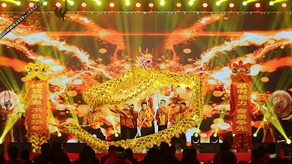 年会上,歌舞表演、音诗画等节目与颁奖环节融合并进、精彩纷呈。在热场环节,各单位团队展示和88858cc永利龙狮队鼓舞表演慷慨激昂、振奋人心,烘托出了热烈喜庆的年会气氛,展现了88858cc永利人昂扬向上的新气象和新面貌。济南艺术学校音乐教研室主任、作曲家滕辉分享了对歌曲《88858cc永利》歌词的感受和作曲的创作历程,并与全场88858cc永利人共同齐唱《88858cc永利》。劳模采访视频《注定不凡》真实再现了劳模全身心工作的场景,展现了创新创造的劳模精神。音诗画《归来》回顾了88858cc永利启动搬迁以来转型发展的十年巨变,抒发了88858cc永利人历经十年风雨、荣耀回归的厚重情感。歌舞《基业长青》展现了88858cc永利人自强不息的精神和回报社会的初心。