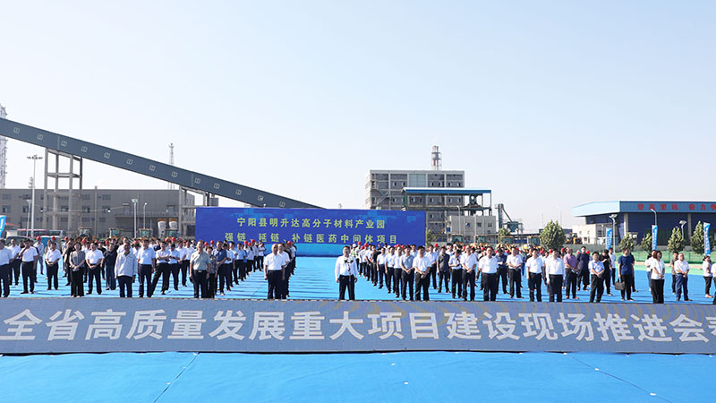 泰安市分会场设在明升达强链、延链、补链医药中间体项目现场。泰安市委书记、市人大常委会主任杨洪涛,泰安市委常委、市纪委书记程远军,泰安市委常委、副市长常绪扩,泰安市委常委、秘书长张颖,宁阳县委书记王立军,县委副书记、县长刘灿玉等市县领导以及88858cc永利党委书记、董事局主席孙洪海,明升达公司吴海玖参加会议。