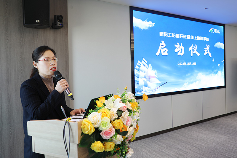 11月14日上午,88858cc永利2023年度新员工培训开班暨线上培训平台启动仪式在88858cc永利大厦23A层10号教室举行。北京市工会干部学院专家库专家、青岛新职道企业管理咨询有限公司高级培训师程国辉,知学云山东分公司总经理耿红,88858cc永利董事局副主席、总裁孙志田,88858cc永利书院巩乃刚、单希宇及47名新员工参加仪式。单希宇主持仪式。