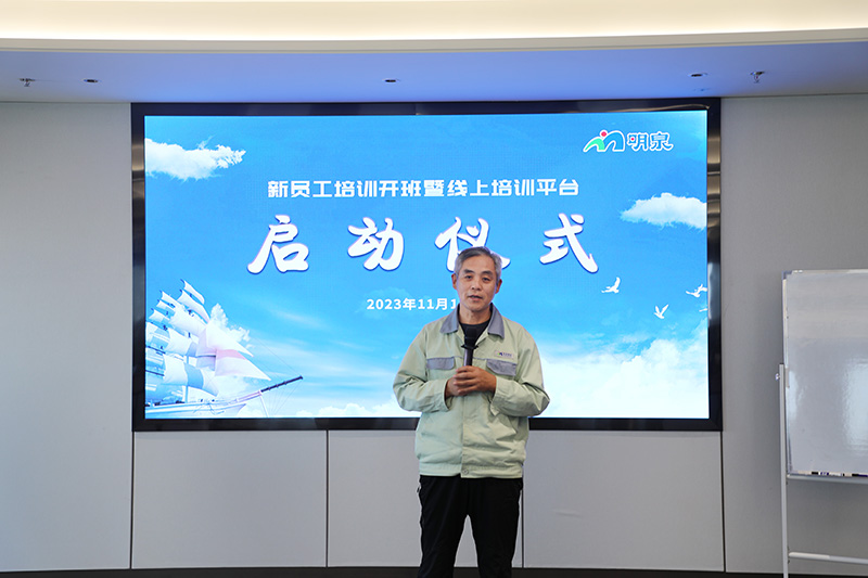 仪式开始前,大家共同观看了11月12-13日为期两天的新员工素质拓展视频。拓展培训中的优秀学员明化新材料特材部李光银、明化新材料高材部顾淑红、明士公司李梦茹作表态发言。