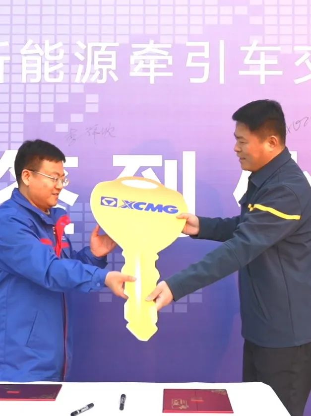 88858cc永利明秀云智能物流公司董事长李祥收与徐工汽车公司销售总监于兆全进行车辆交付。