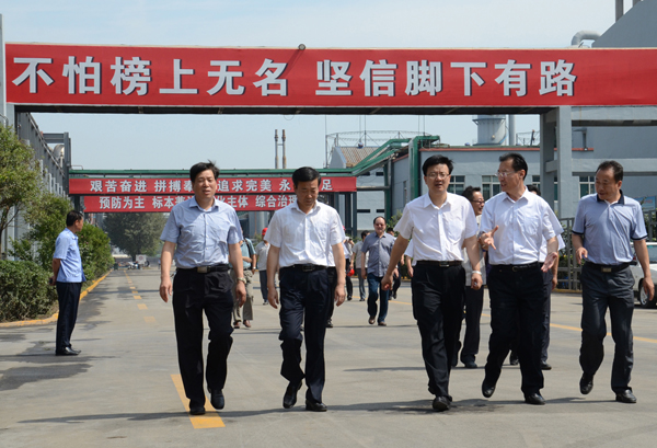 贺董事长一行先后实地查看了公司新建双氧水项目工地、“3050”项目施工现场和生产调度中心,随后,在公司办公楼三楼会议室,听取了公司董事长孙洪海的工作汇报。孙董事长就明水公司目前所面临的内外部形势、企业退城进园搬迁、现有生产系统结构调整、公司在建项目和洁净煤气化项目进展等情况进行了全面汇报。贺董事长对公司的总体工作表示满意。他指出,明水化工是几十年的老化工企业,在现在经济大形势和行业形势极为严峻的情况下,能够逆势而上,借搬迁之机,抓住关键转折点,依托先进的技术,实现产品结构、产量产能和经济效益的全面提升,这是传统煤化工企业向新型煤化工转变的良好开端,希望明水化工能够下大力气进行全方位调研,争取把大项目做好,把企业做大做强。贺董事长对公司的生产经营提出了几点要求,一是要狠抓安全管理。安全问题是化工企业的头等大事,经营好安全就是最好的成绩,就是企业最大的效益。安全认识要提高,投入要加大,管理要到位,尤其要提高员工的安全意识,进行全面的安全管控。二是要做好环保管控,煤化工企业的污染较严重,但是并不是不可治理的,环保问题解决不了,其他的工作更不可能做好。三是生产和经营,要确保企业的生产设备正常运转,保证生产才能产生经济效益和社会效益,要认真提高经营意识和盈利意识,围绕市场调整产品结构、价格和销售政策。希望明水化工能够做好做大做强,实现企业健康、稳定,实现企业与社会、企业与环境、企业与职工的和谐发展,才能更好的报答股东、回馈政府、造福当地百姓。