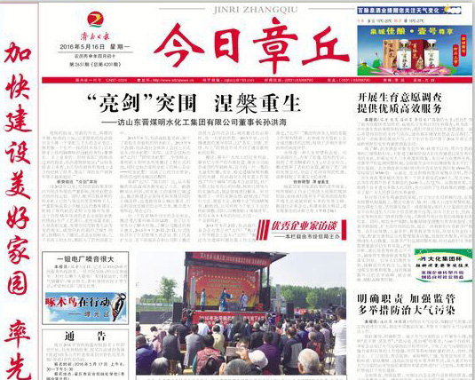 5月16日《今日章丘》优秀企业家访谈栏目:“亮剑突围 涅槃重生——访山东晋煤明水化工集团有限公司董事长孙洪海”专题报道。