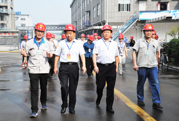 调研组一行现场查看了尿素二车间二氧化碳气提法尿素生产控制中心和MTA项目建设施工情况,孙洪海介绍了公司实施搬迁以来的装置改造、特种设备管理以及新项目施工建设等情况。