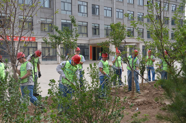 劳动开始后,50余名团员青年、环保志愿者代表分三个队,分别清理了MTA中心控制室周围、指挥部院落前以及食堂西侧东南角处的环境卫生。