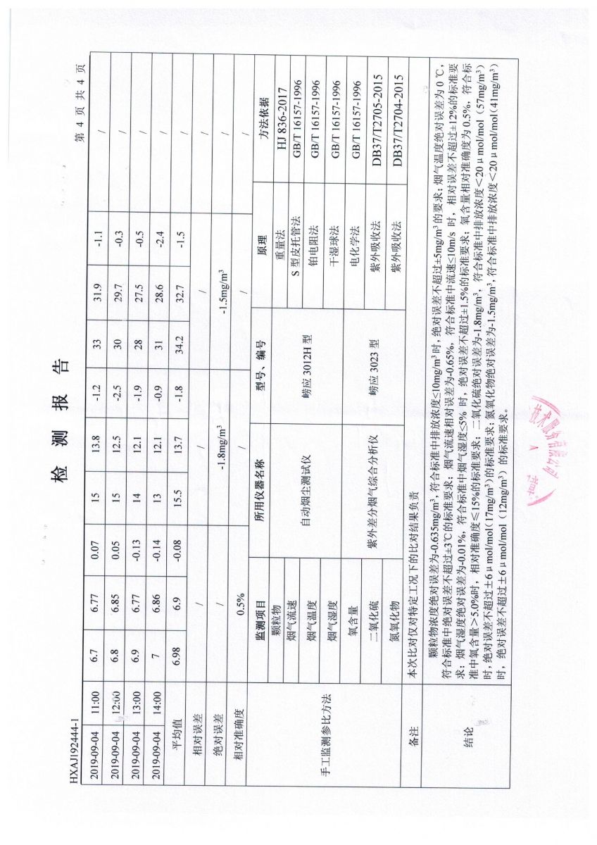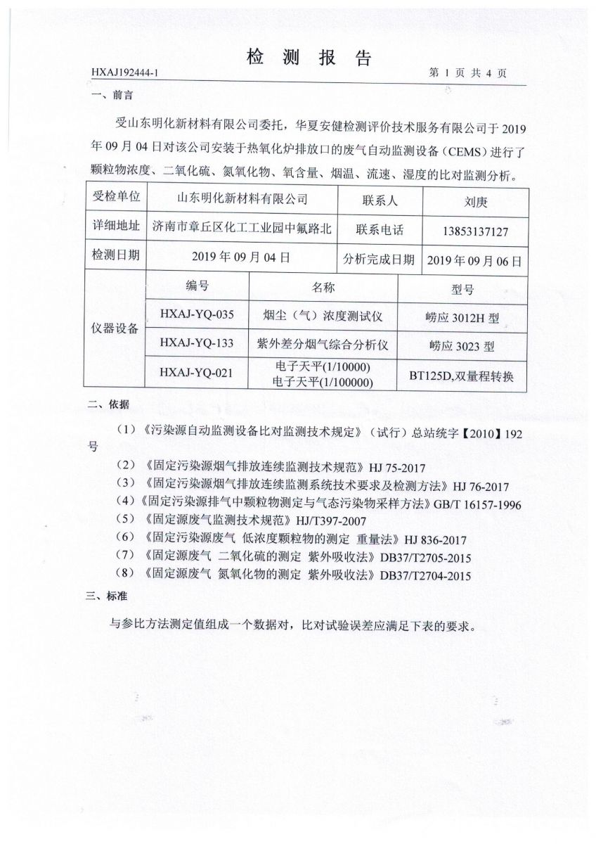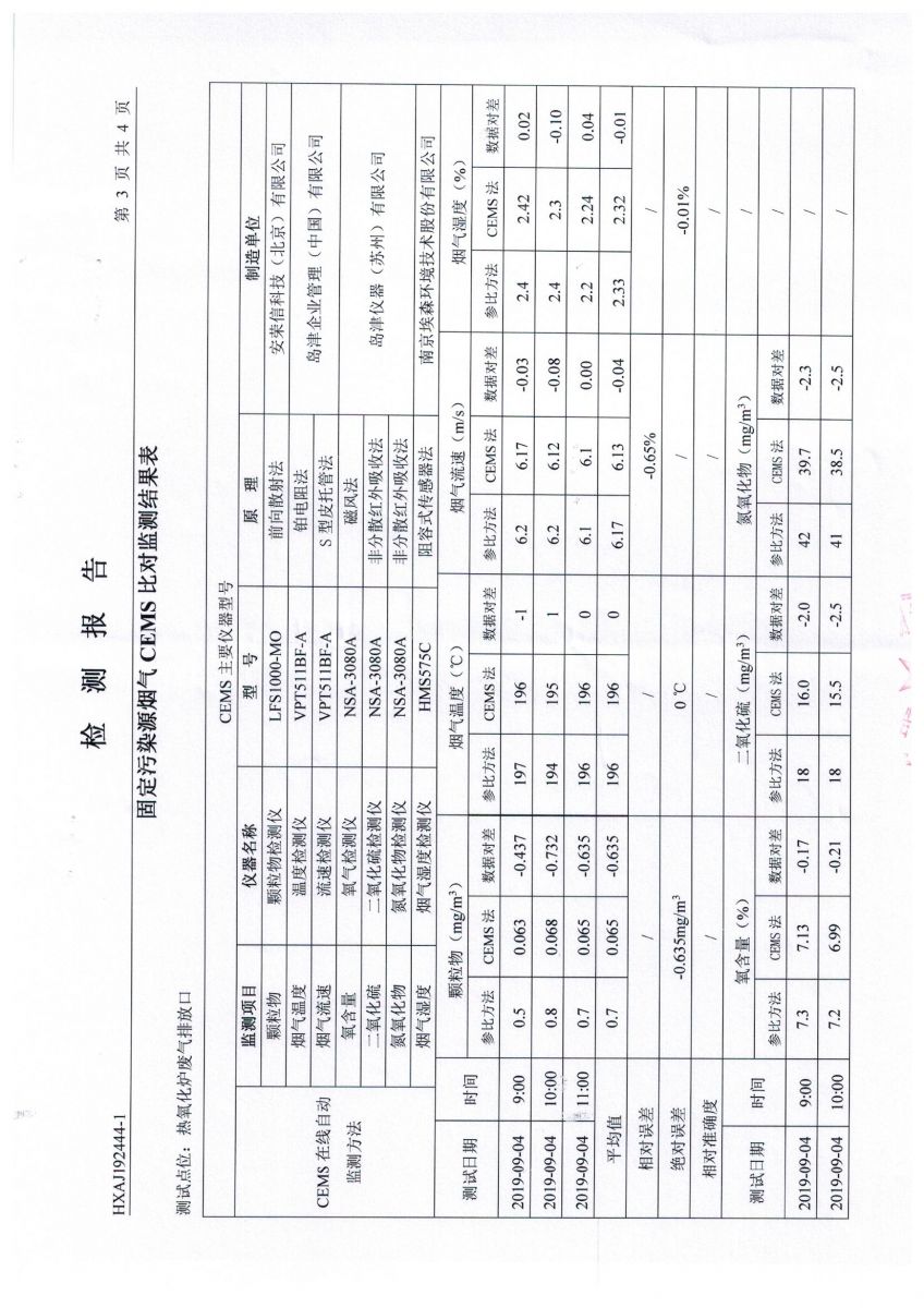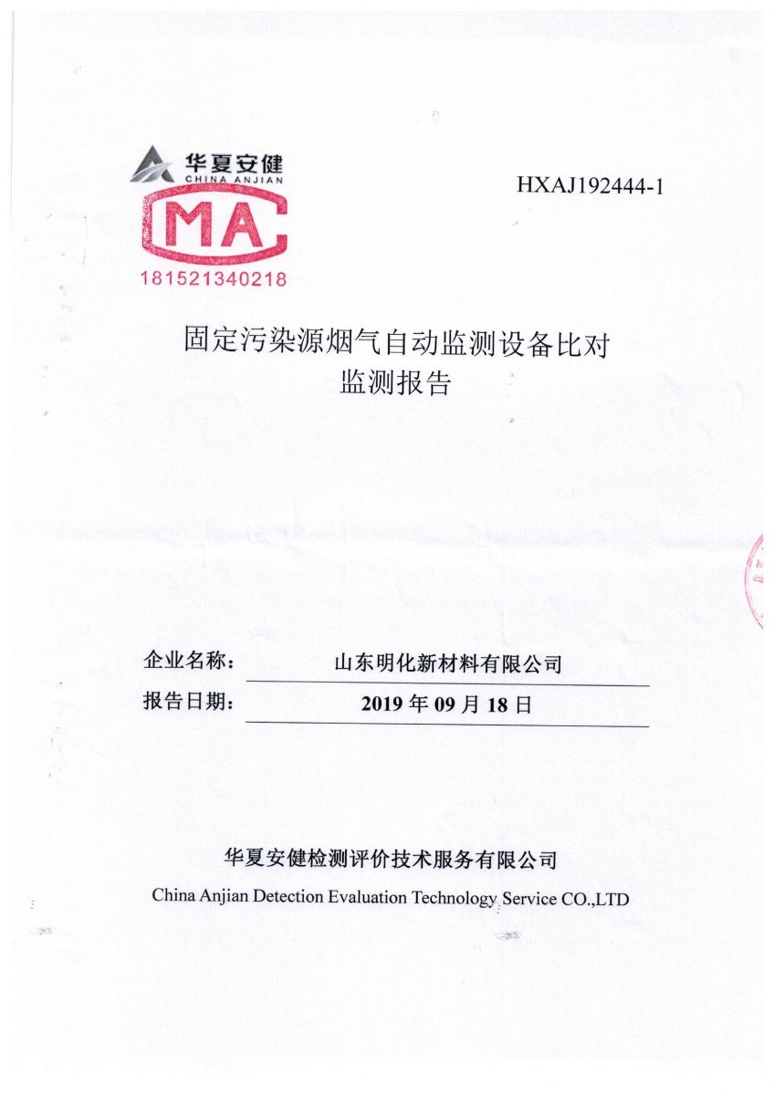 明化新材料3季度烟气自动监测设备比对监测报告